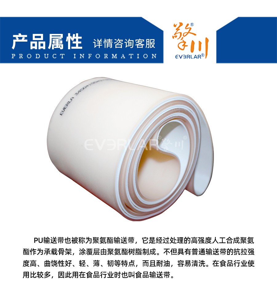 PU輸送帶也被稱為聚氨酯輸送帶,它是經(jīng)過處理的高強(qiáng)度人工合成聚氨酯作為承載骨架,涂覆層由聚氨酯樹脂制成。不但具有普通輸送帶的抗拉強(qiáng)度高、曲饒性好、輕、薄、韌等特點(diǎn),而且耐油,容易清洗。在食品行業(yè)使用比較多,因此用在食品行業(yè)時(shí)也叫食品輸送帶。