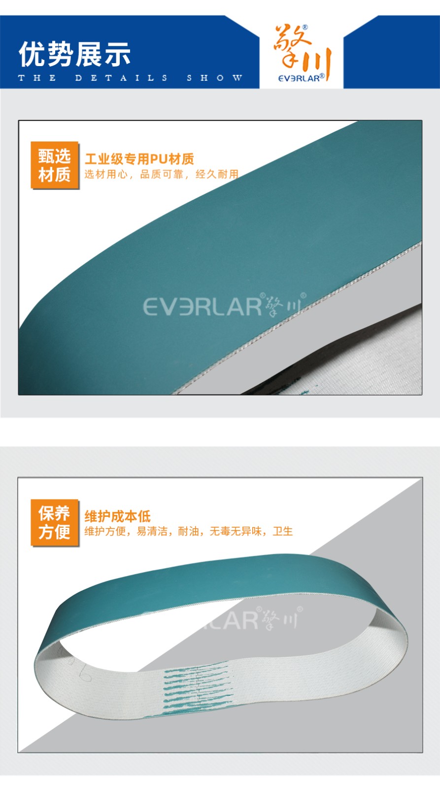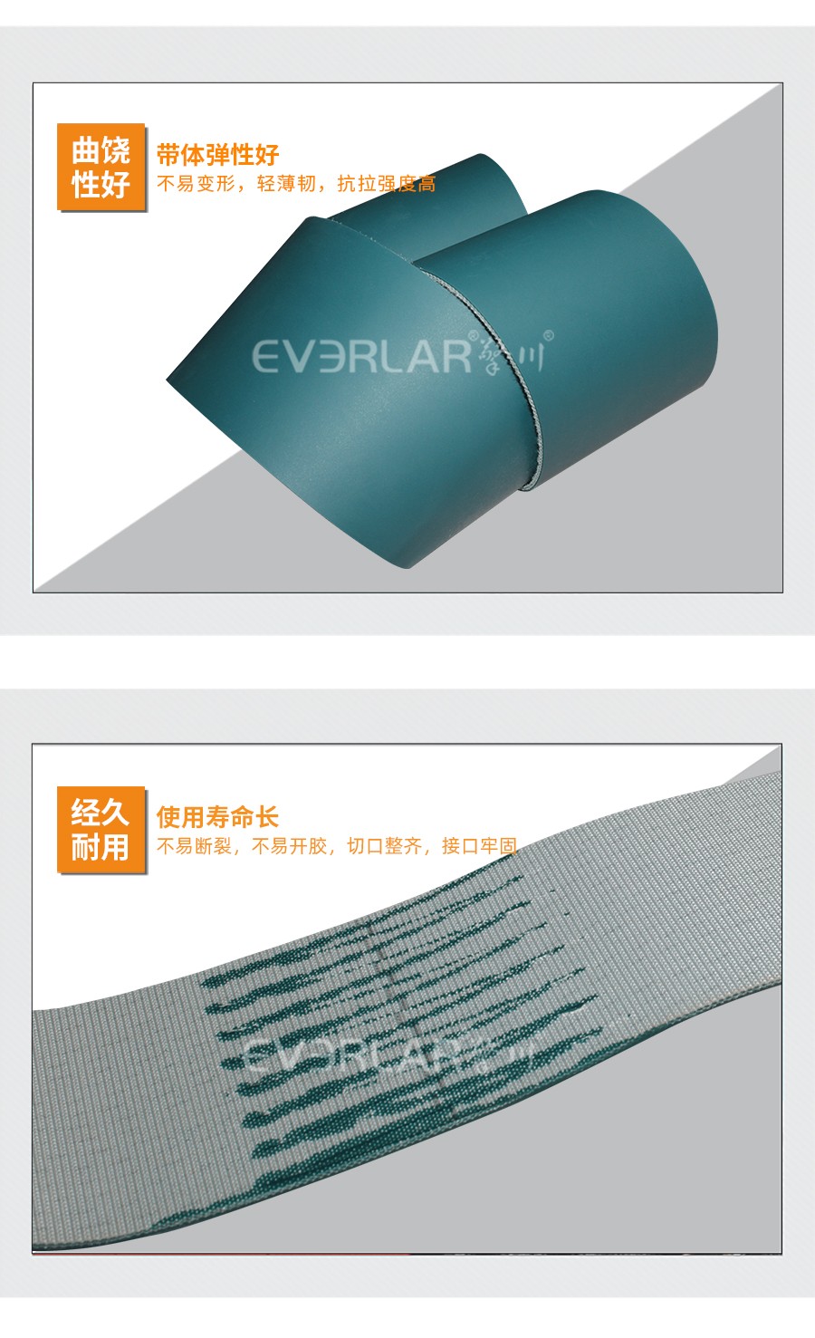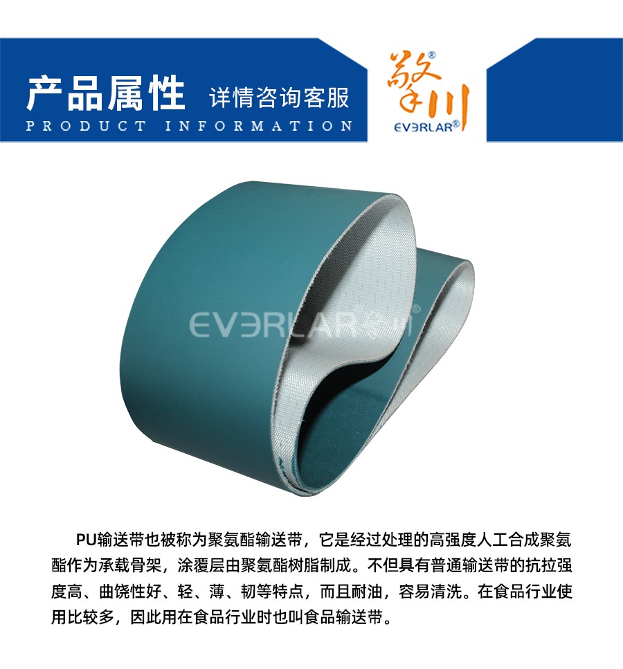 PU輸送帶也被稱為聚氨酯輸送帶,它是經(jīng)過處理的高強度人工合成聚氨酯作為承載骨架,涂覆層由聚氨酯樹脂制成。不但具有普通輸送帶的抗拉強度高、曲饒性好、輕、薄、韌等特點,而且耐油,容易清洗。在食品行業(yè)使用比較多,因此用在食品行業(yè)時也叫食品輸送帶。