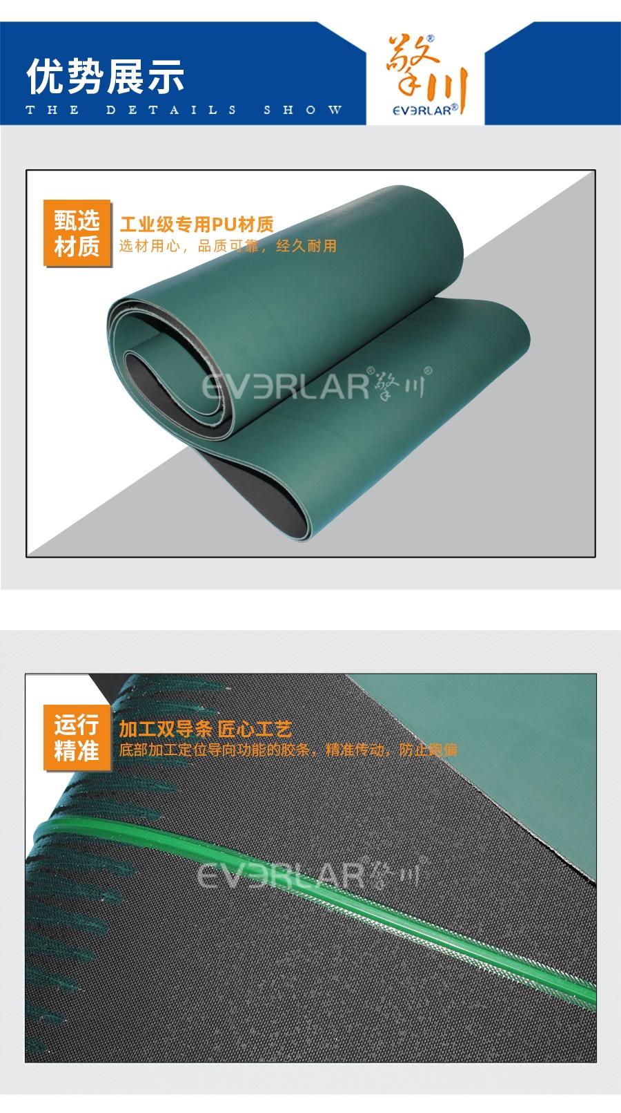 PU輸送帶也被稱為聚氨酯輸送帶,它是經(jīng)過處理的高強度人工合成聚氨酯作為承載骨架,涂覆層由聚氨酯樹脂制成。不但具有普通輸送帶的抗拉強度高、曲饒性好、輕、薄、韌等特點,而且耐油,容易清洗。在食品行業(yè)使用比較多,因此用在食品行業(yè)時也叫食品輸送帶。