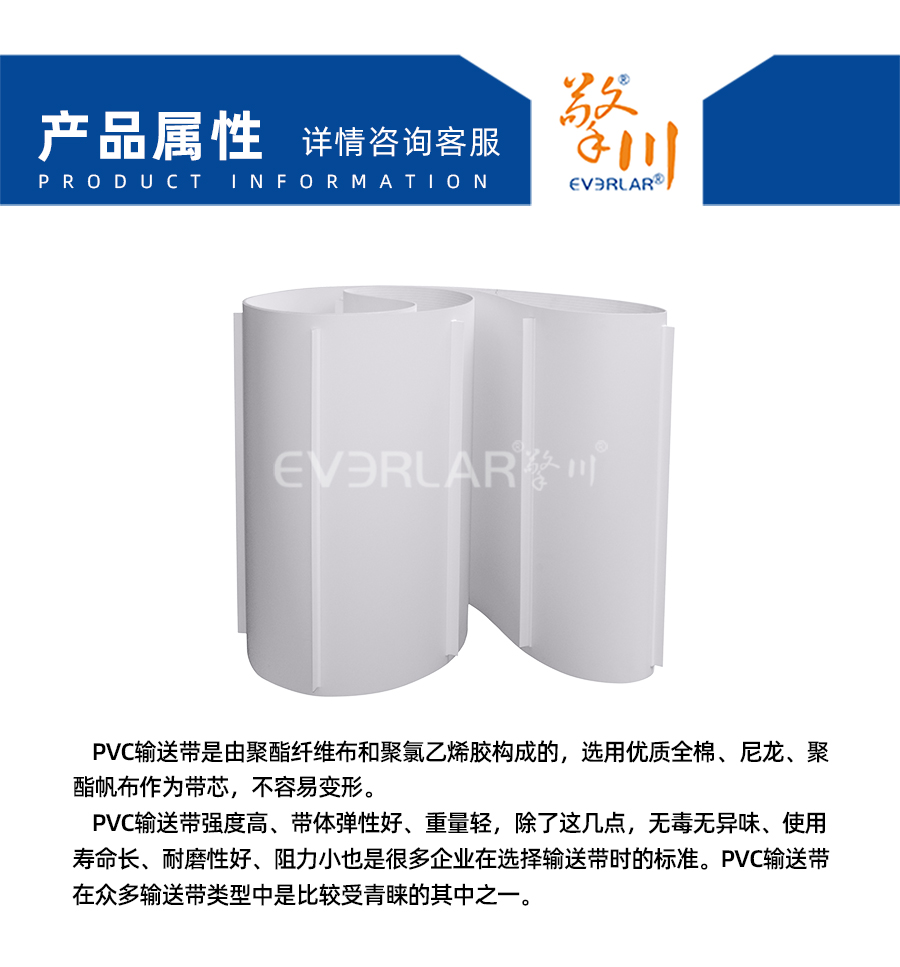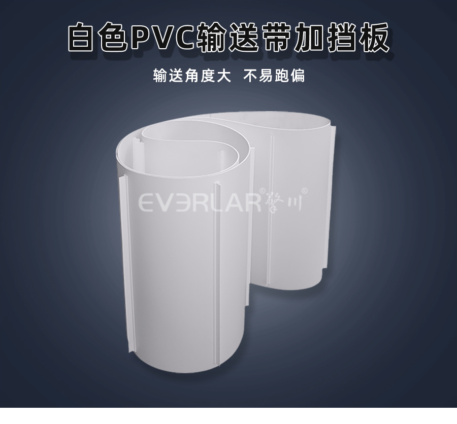 • 產(chǎn)品名稱:擎川everlar定制PVC輸送帶白色加擋板