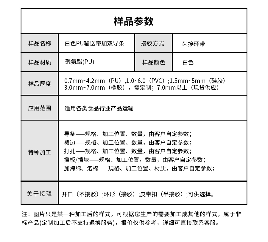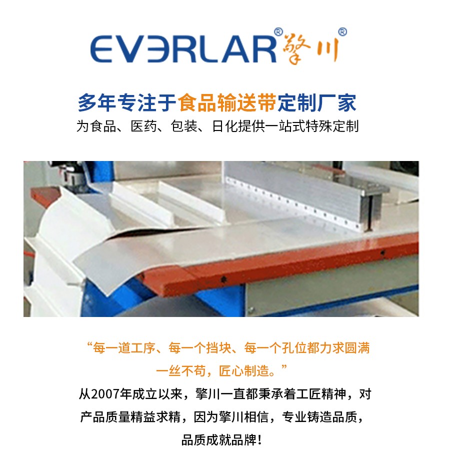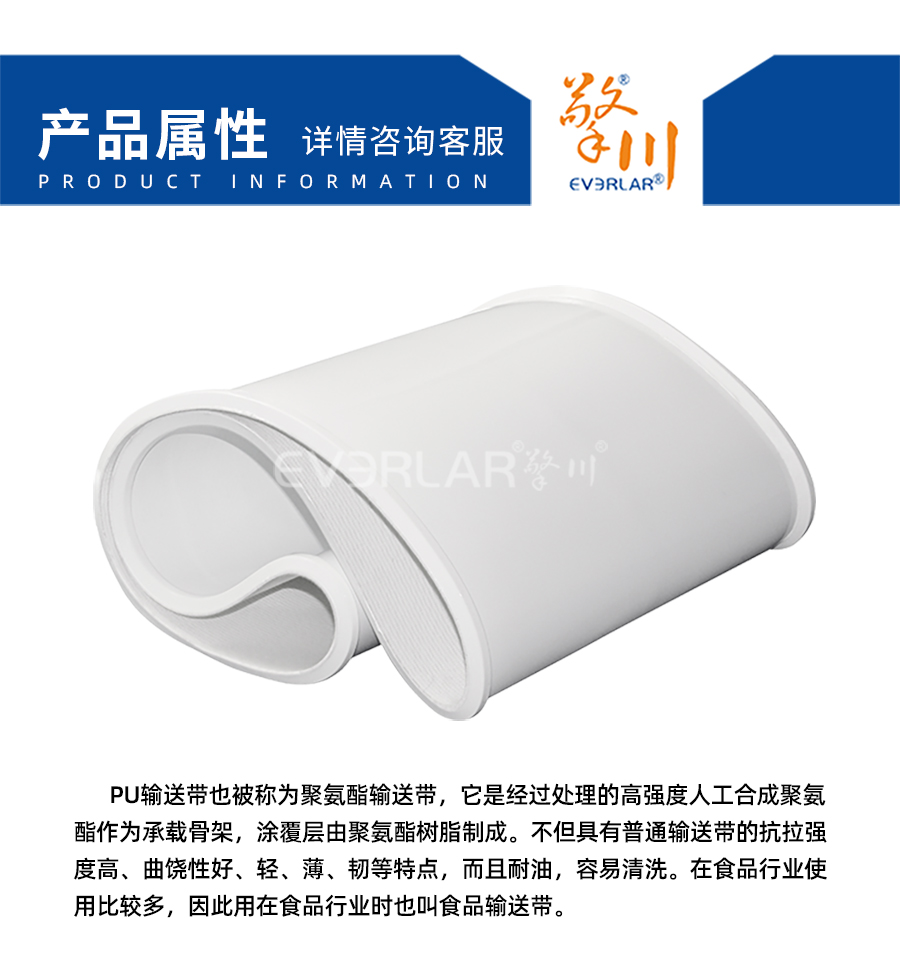 • 產(chǎn)品名稱:擎川everlar定制白色加雙導(dǎo)條聚氨酯PU食品輸送帶