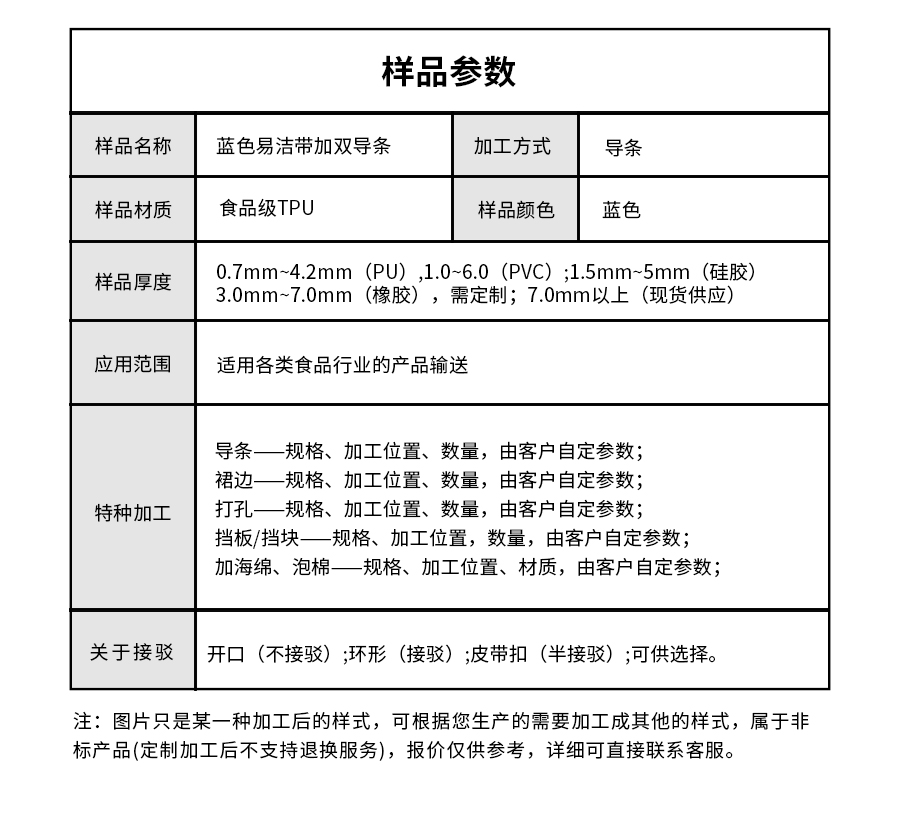 • 耐化學腐蝕、光滑抗粘、耐臟、易于清洗耐高溫,加裝導條提升編送能力。