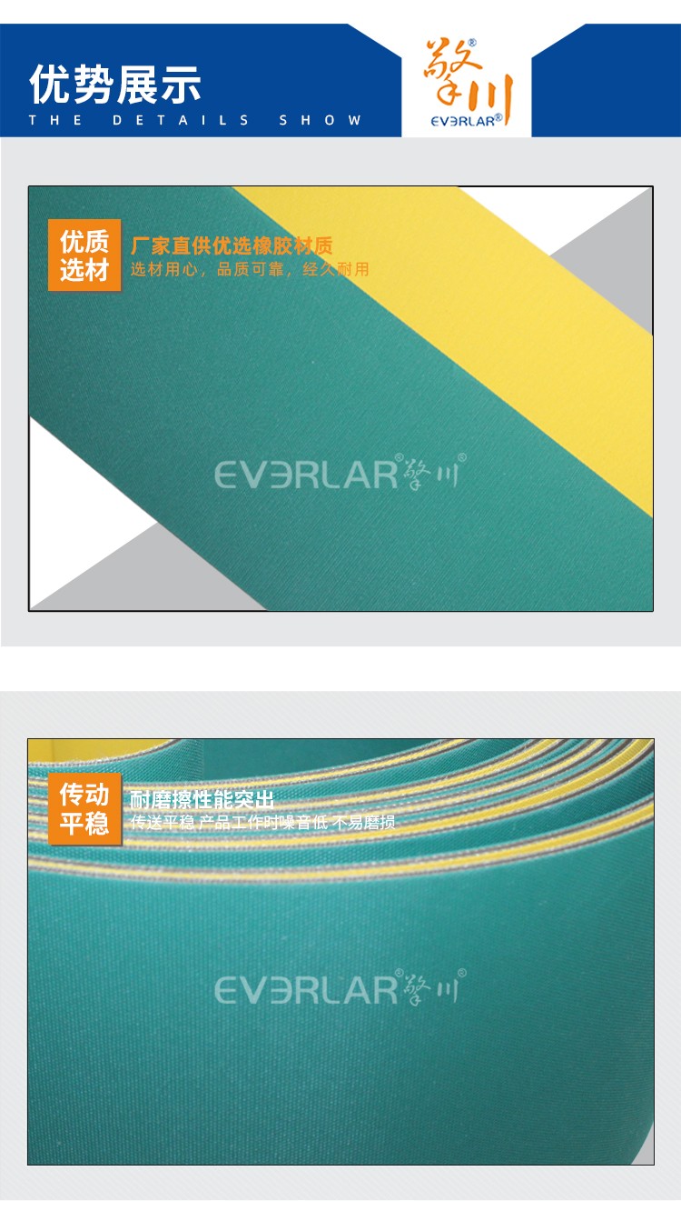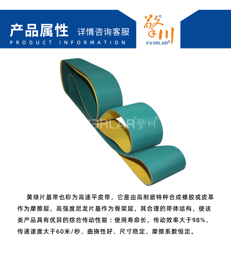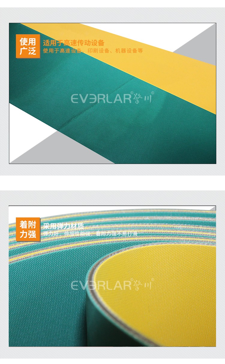 產(chǎn)品名稱(chēng):黃綠片基帶食品輸送帶定制擎川everlar工業(yè)皮帶