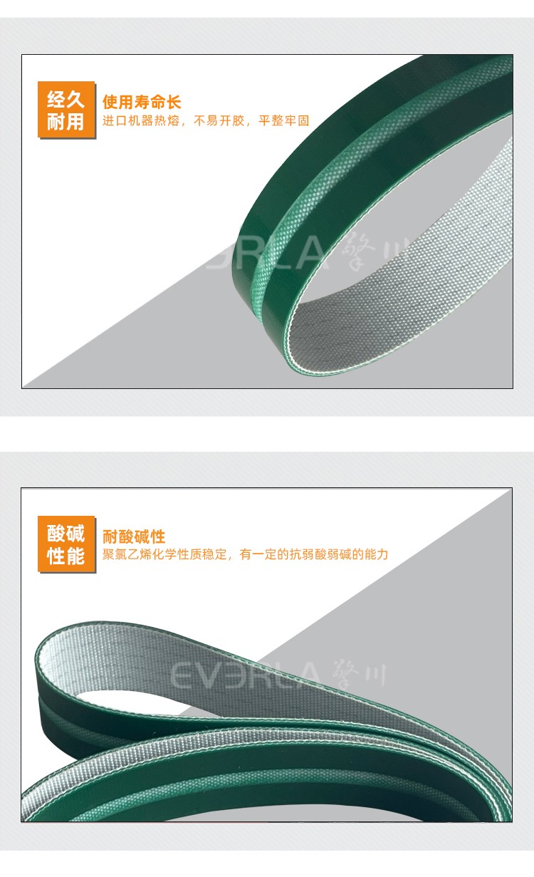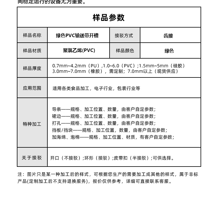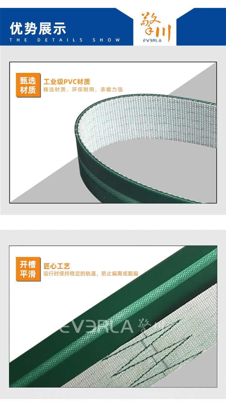 • 產品名稱:綠色PVC輸送帶開槽耐磨耐寒防靜電工業(yè)皮帶