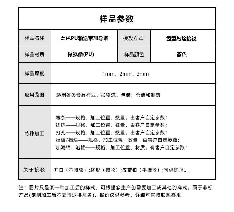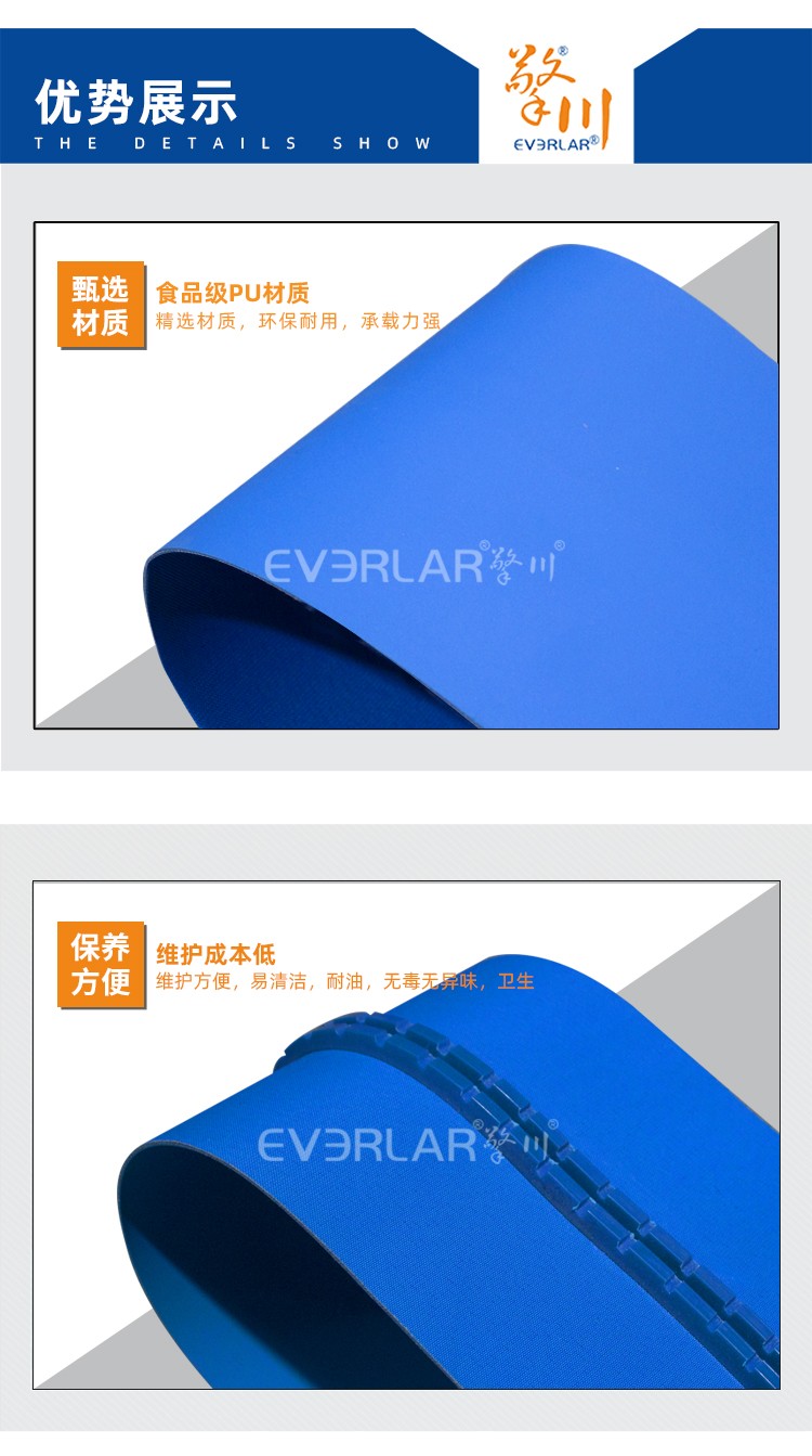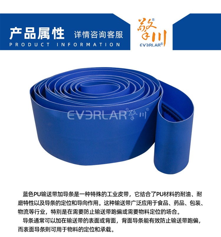 • 產(chǎn)品名稱:藍色PU輸送帶加導(dǎo)條耐磨耐油耐腐蝕工業(yè)皮帶定制