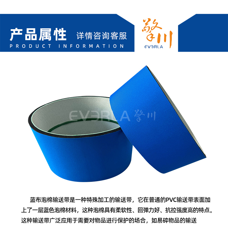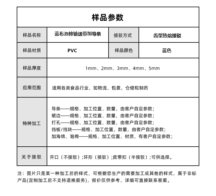 產(chǎn)品名稱:藍(lán)色泡棉輸送帶加導(dǎo)條耐磨降噪防滑工業(yè)皮帶