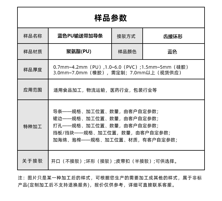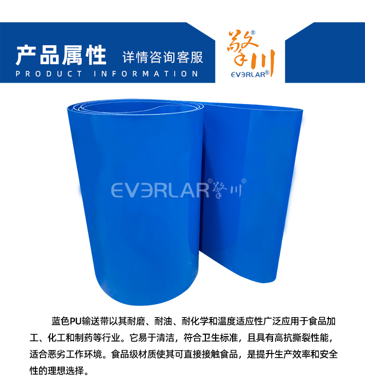 產(chǎn)品名稱:藍(lán)色PU輸送帶加導(dǎo)條耐磨耐油耐腐蝕工業(yè)皮帶定制