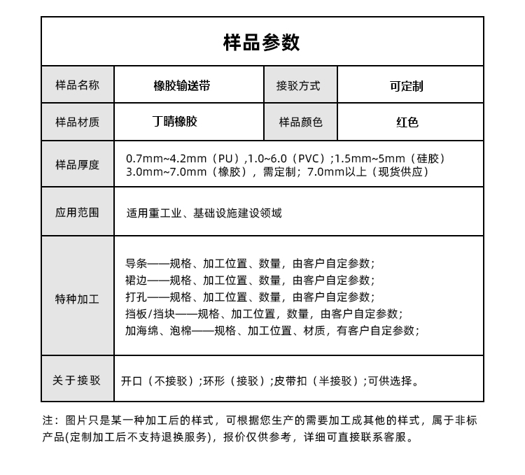 • 產(chǎn)品名稱:橡膠輸送帶加導條耐磨防滑耐溫工業(yè)皮帶