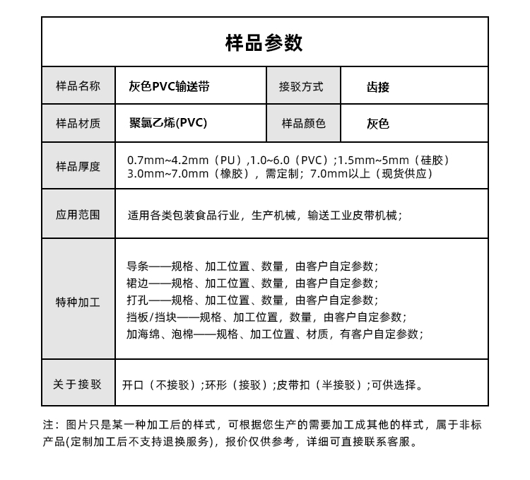 • 產(chǎn)品名稱:灰色PVC輸送帶耐磨平穩(wěn)耐腐蝕包裝機械工業(yè)皮帶定制