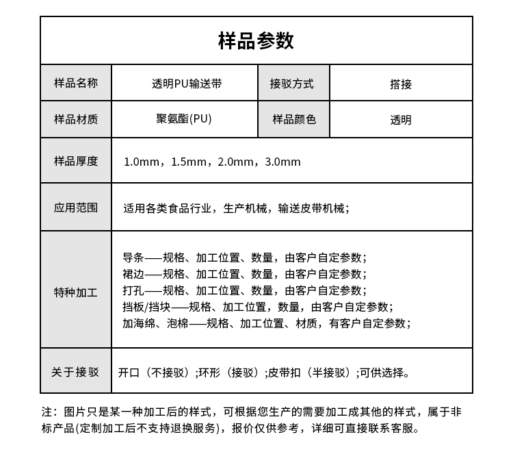 產(chǎn)品名稱(chēng):透明PU輸送帶耐磨易清潔耐腐蝕工業(yè)皮帶定制