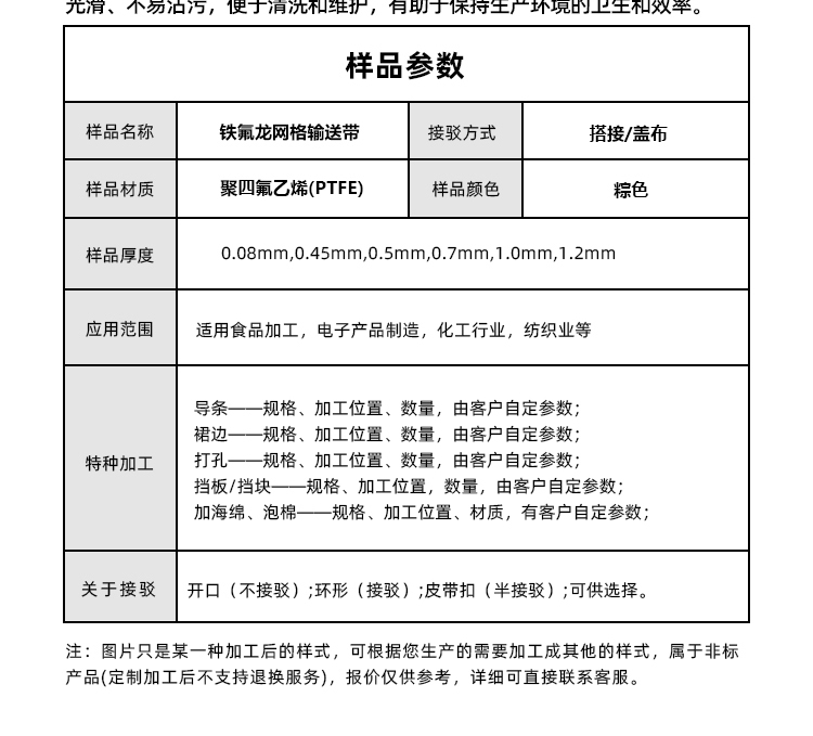 • 鐵氟龍網(wǎng)格輸送帶防火耐腐蝕耐高溫工業(yè)皮帶
