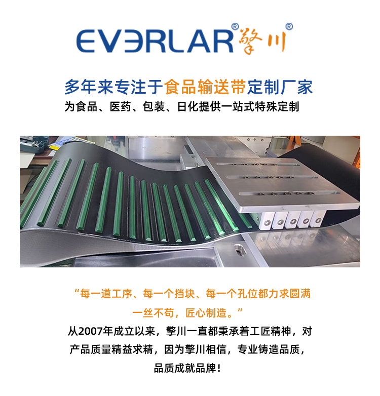 • 產(chǎn)品名稱:雙面纖維輸送帶加擋板耐磨防滑食品行業(yè)流水線提升機傳送帶擎川定制