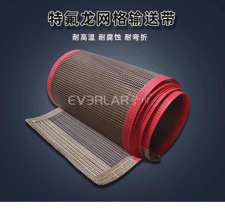 為食品、醫(yī)藥、包裝、日化提供一站式特殊定制耐高溫輸送帶:鐵氟龍網(wǎng)格輸送帶,防粘耐腐性能優(yōu)